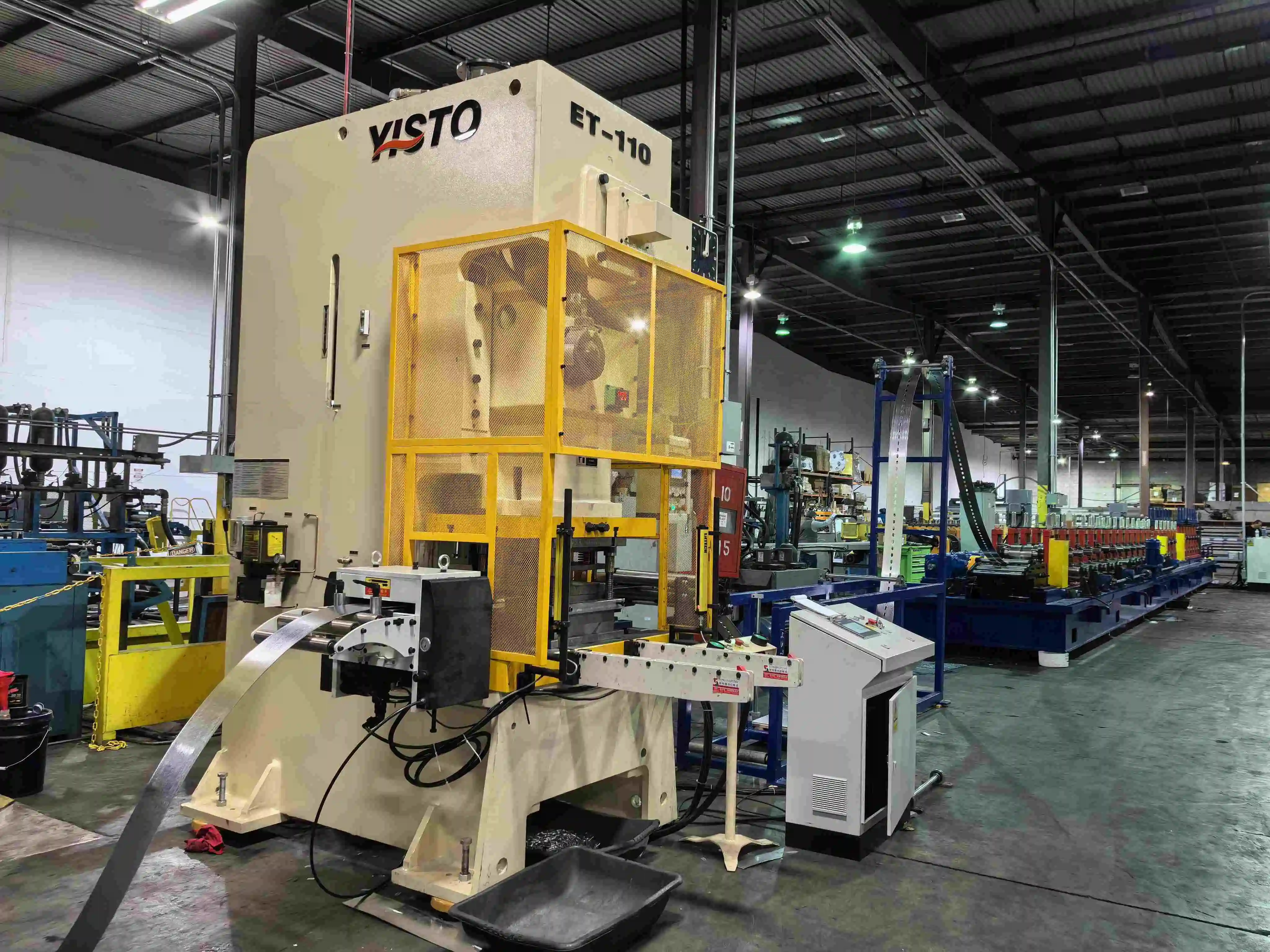 Этот станок представляет собой крупногабаритный заводской инструмент, превращающий листовой металл в прочные несущие балки. Сначала станок аккуратно разматывает тяжелую катушку листового металла. Затем металлические ролики пошагово сгибают сталь. После этого, при необходимости, пробивает отверстия. Наконец, готовый металл разрезается на точно заданную длину. Поскольку станок выполняет все эти операции автоматически, заводы могут изготавливать детали идеально и быстро.