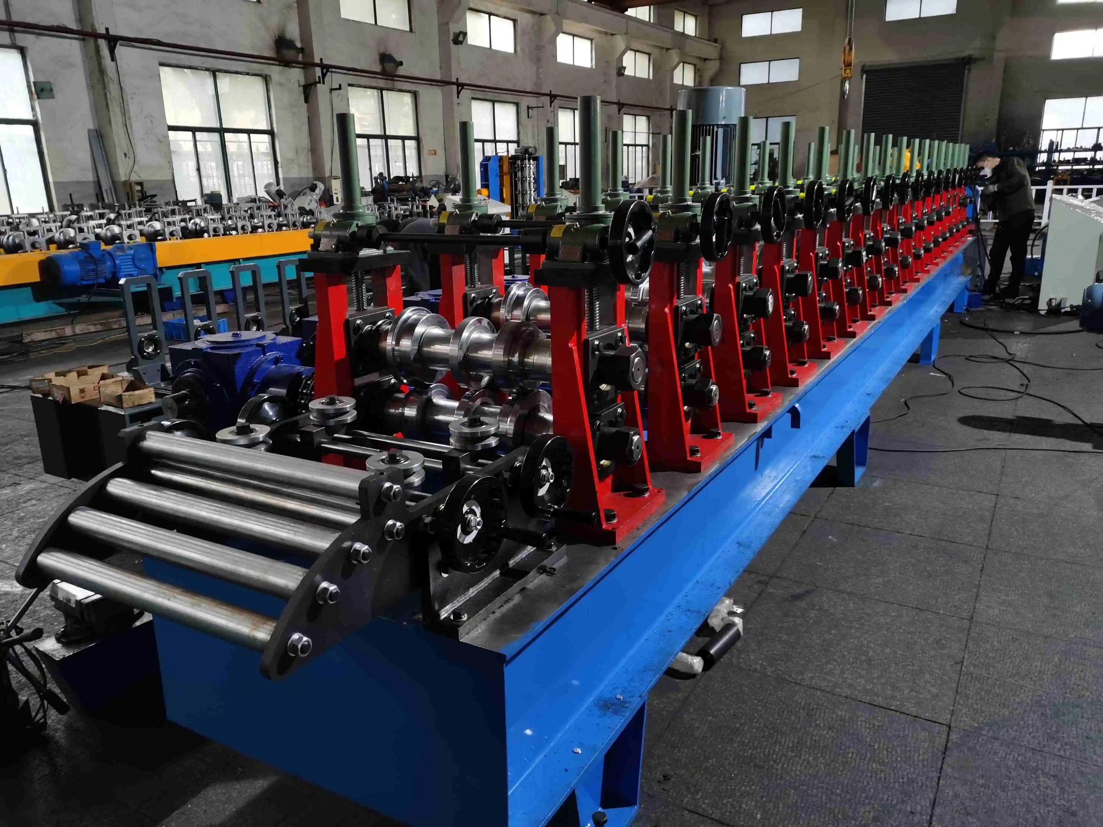 Roll Forming Mill: A series of precision-engineered rollers that gradually bend the flat metal into the specific “C” or “U” shape profile with reinforced ribs.